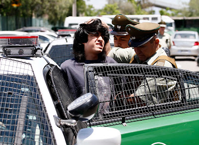 Lo acusaban además de otra explosión un mes antes, en la 12° Comisaría de Carabineros de San Miguel. También por porte de arma blanca y la pólvora negra que hallaron en su casa. La foto del día que lo detuvieron lo muestra escupiendo al rostro de uno de los policías que lo llevaban esposado.